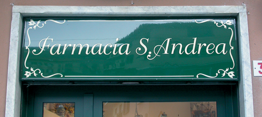 Scritte e fregi dal sapore antico realizzate anche in oro zecchino dipinte a mano con ombre e sfumature eseguite con vernici per esterno ad alta resistenza.